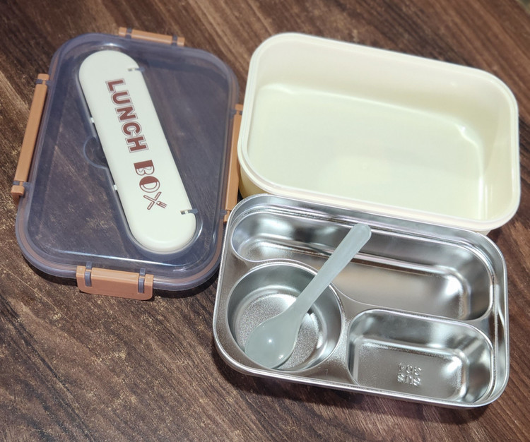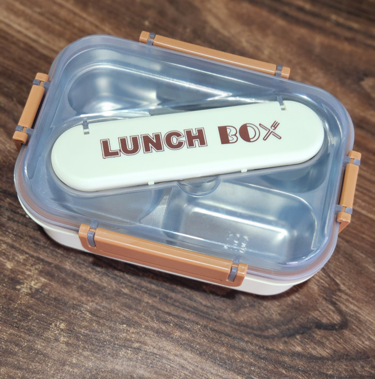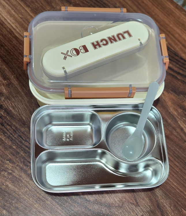 لانچ باکس استیل 3خانه با بدنه پلاستیک و ظرف استیل
