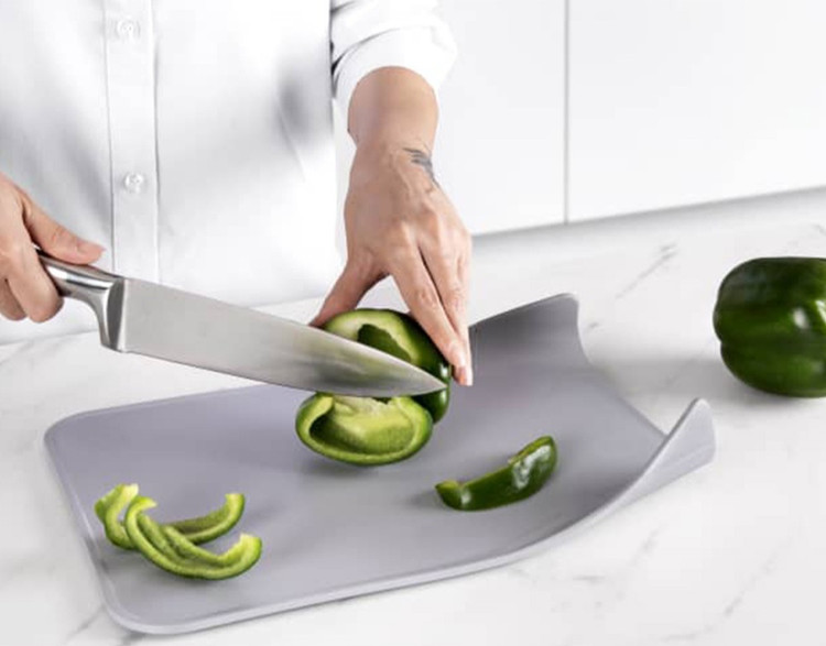 طراحی لبه های خمیده در تخته موجب میشود محتویات برش خورده به راحتی درون ظرف مورد نظر هدایت میشود